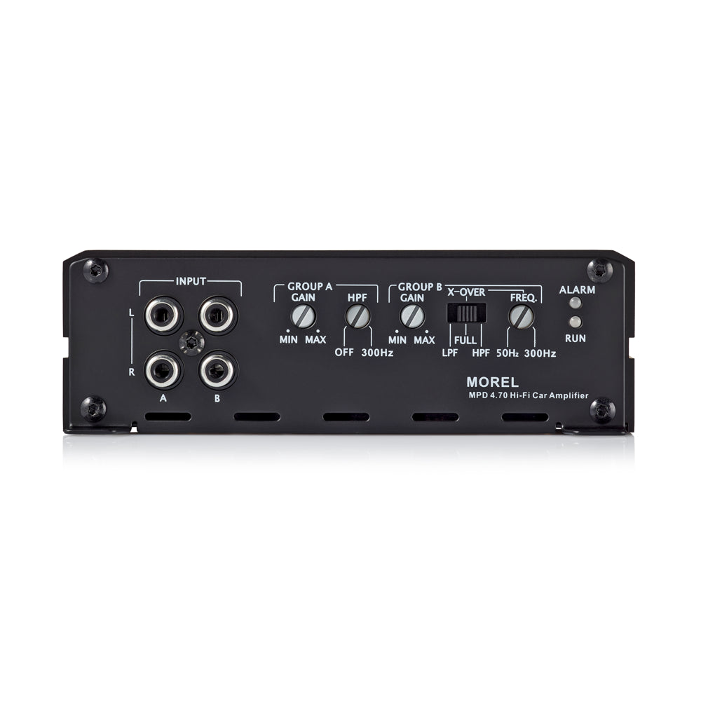 The Morel MPD 4.70 is a compact 4-channel Class D amplifier that delivers impressive power despite its small footprint, making it ideal for tight installation spaces without compromising performance.
